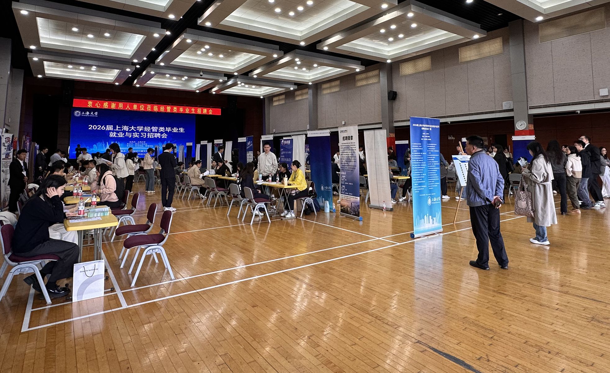 10月29日下午,2026届上海大学经管类毕业生就业与实习招聘会在嘉定校区行健文体中心举行。此次招聘会由上海大学主办,悉尼工商学院承办,经济学院和管理学院协办,重点针对上海大学经管类本硕博应届生,为学生和企业搭建精准对接的就业服务平台,助力毕业生实现高质量就业。