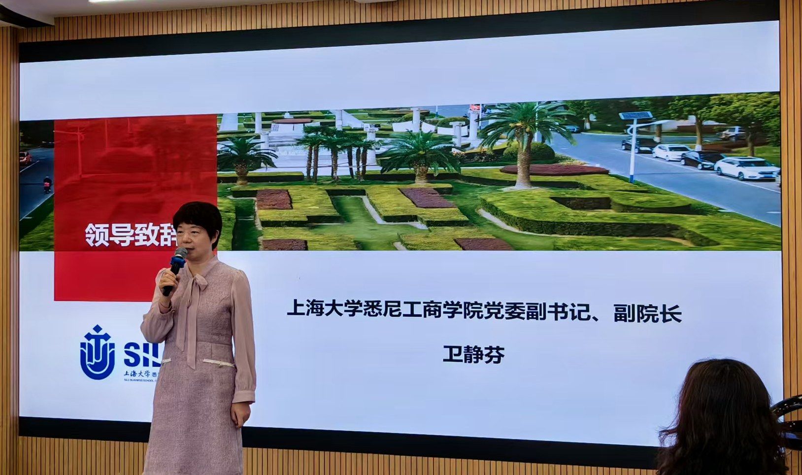 经过前期工作的精心准备,院赛正式拉开帷幕。卫静芬在致辞中首先感谢了程名和任剑婷对大赛的支持。她提到职业规划大赛已经是一个国家级的赛事,同时也是大学生自我思考和职业规划的重要平台。大赛不仅能激发学生的自我提升,也能触动就业工作的开展,对学生也有长远的帮助。她祝愿所有参赛同学能够展现出良好的精神风貌,并期待后续校赛甚至国赛的佳音。最后,卫静芬为上海大学2025-2026学年学生职业规划大赛院赛揭幕。