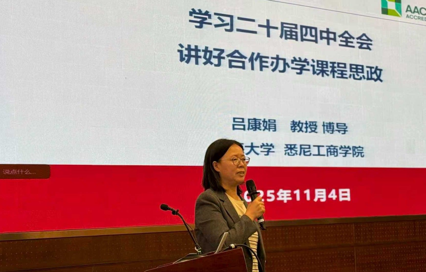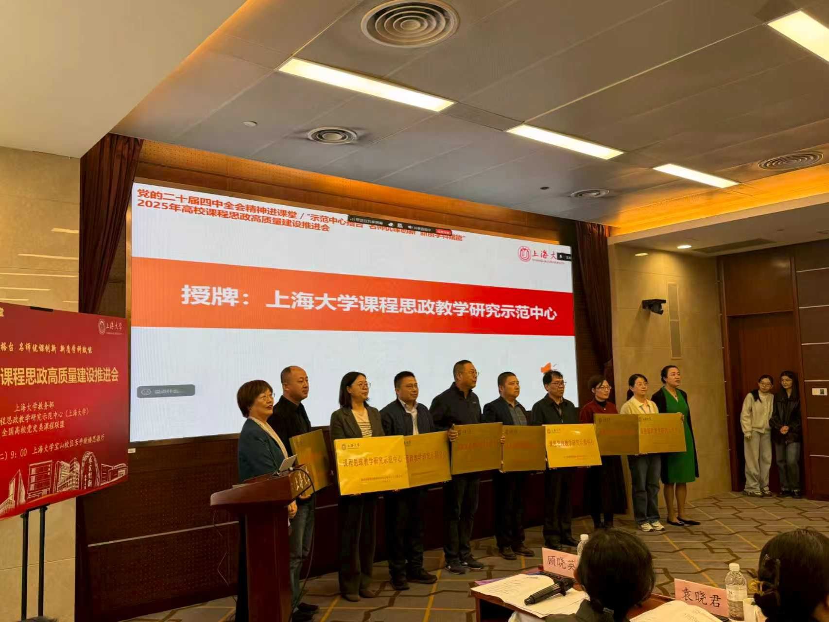 11月4日上午,2025年高校课程思政高质量建设推进会在上海大学乐乎新楼思源厅举行。我院成功入选并成为首批8家校级课程思政教学研究示范中之一。悉尼工商学院党委书记吕康娟教授作为学院课程思政教学研究示范中心负责人、2025上海市课程思政教学设计展示活动特等奖获得者,受邀出席推进会。于雪梅副校长为推进会致开场辞,并为获得校级课程思政教学研究示范中心的学院授牌。