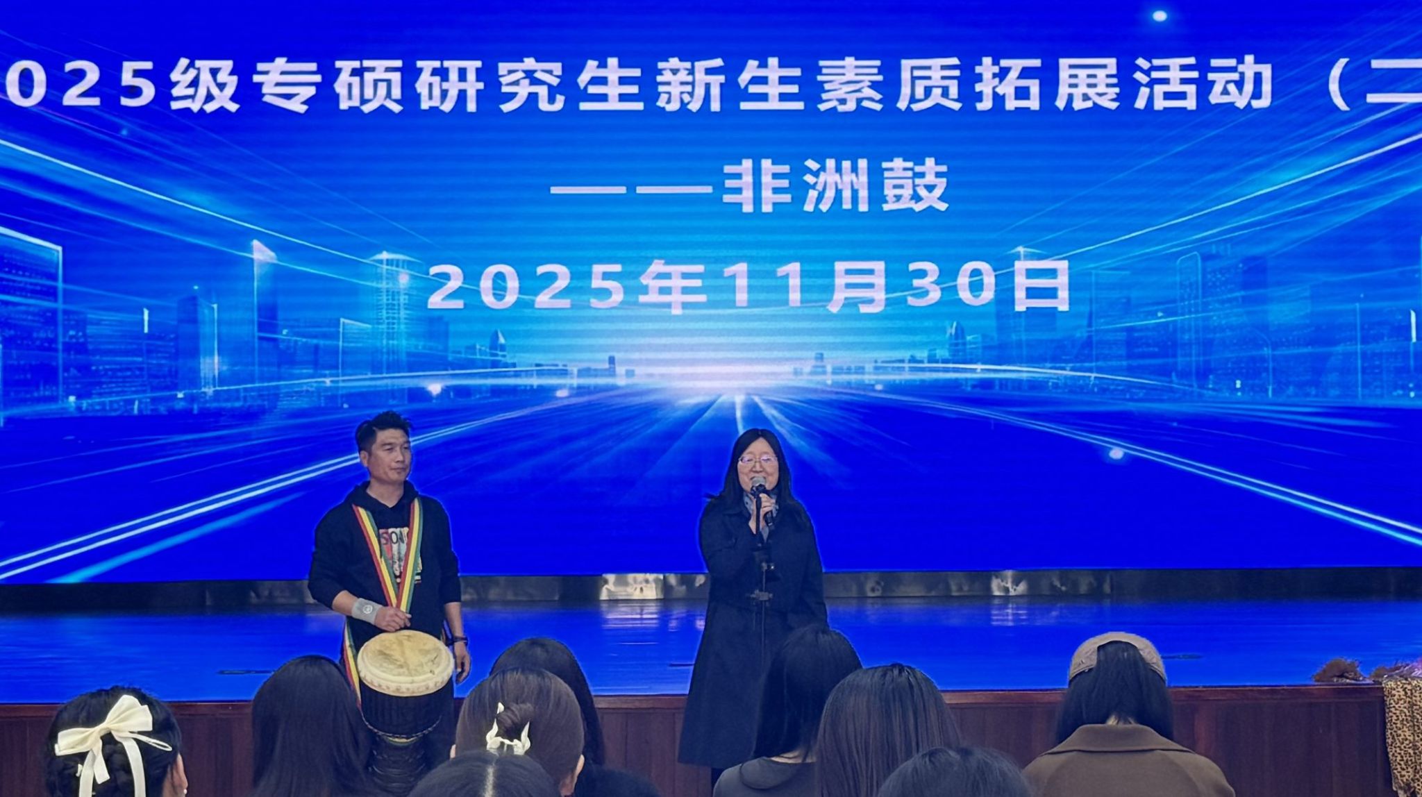 初冬暖阳映照嘉园,声声鼓点激荡青春。11月30日下午,上海大学嘉定校区行健文体中心内热情洋溢,一场以“非洲鼓”为主题的2025级专硕研究生素质拓展活动在这里拉开帷幕。
