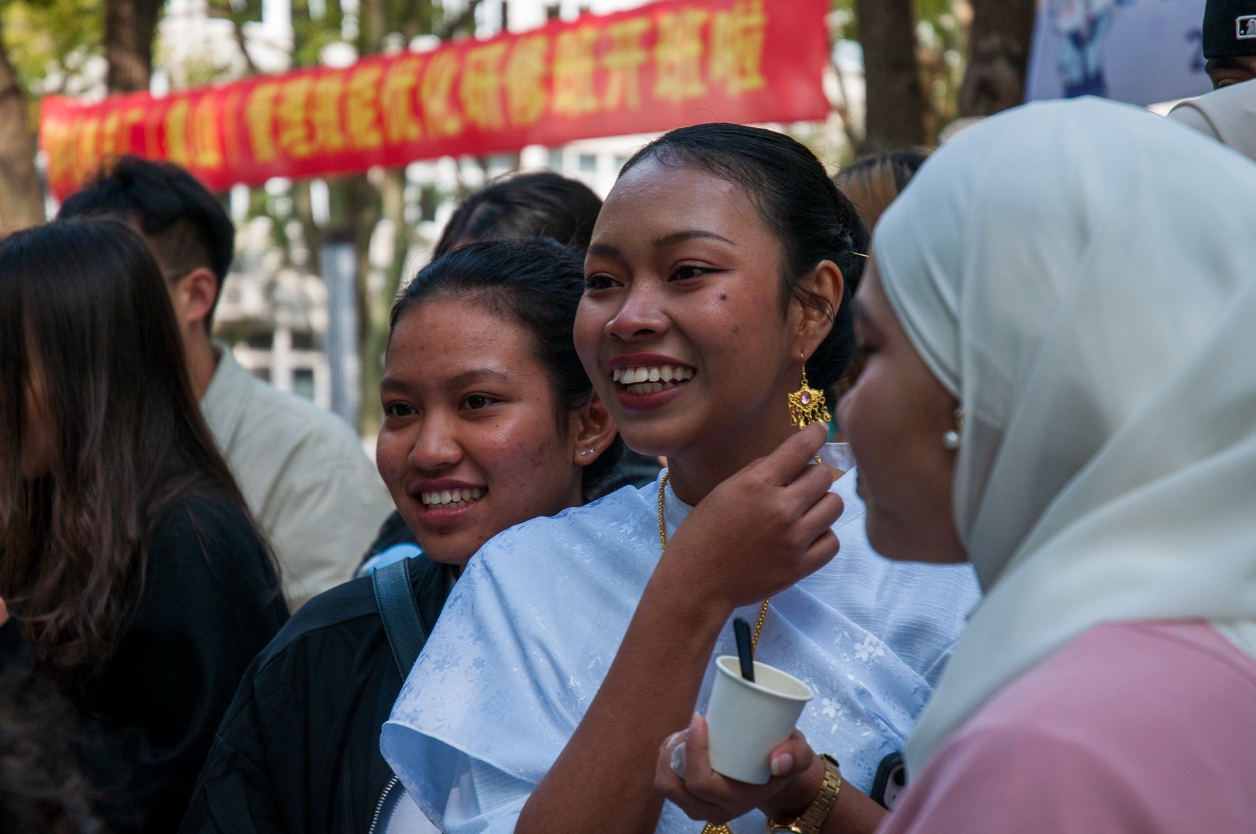 通过形式多样的互动环节,学生们切身感受到不同文化的魅力。本次活动取得了显著成效:中外学生对全球各地文化的了解进一步深化,跨文化理解与共识得以增强。系列活动不仅促进了不同背景学生间的交流与友谊,也锻炼了大家的跨文化沟通能力。 Through a diverse array of interactive activities, students gained firsthand experience of the unique appeal of different cultures. This event yielded remarkable outcomes: both Chinese and international students deepened their understanding of cultures worldwide, while intercultural awareness and mutual recognition were significantly strengthened. The series of activities not only facilitated communication and friendship among students from various backgrounds but also enhanced their cross-cultural communication competencies. |