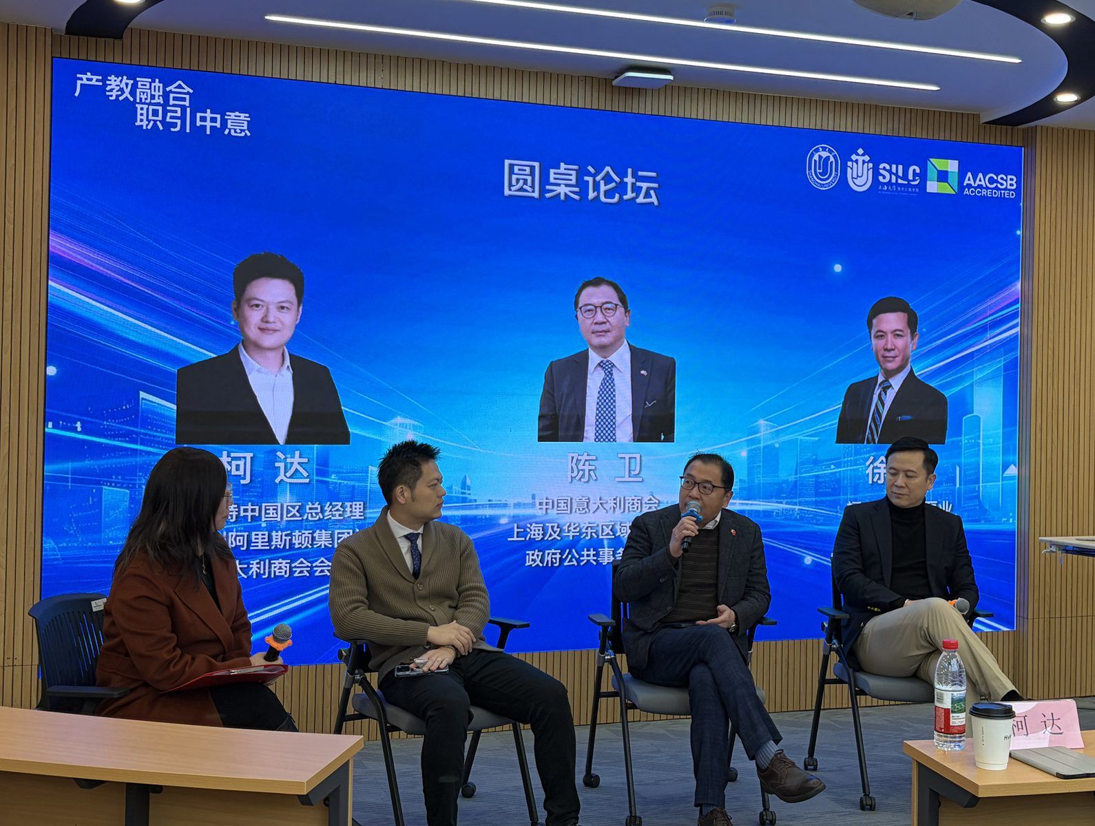 12月14日下午,上海大学悉尼工商学院成功举办“企业导师面对面——‘产教融合、职引中意’外企专场”活动。活动特邀中国意大利商会上海及华东区域总经理、政府公共事务经理陈卫,特莫瓦特中国区总经理(意大利阿里斯顿集团)、中国意大利商会机械工程工作组副协调员柯达,以及福力德泰克(上海)泵业有限公司总经理、中国意大利商会会员徐皓三位资深意大利企业管理者担任主讲嘉宾。上海大学悉尼工商学院经金系主任、专硕管理主任贾利军担任主持。