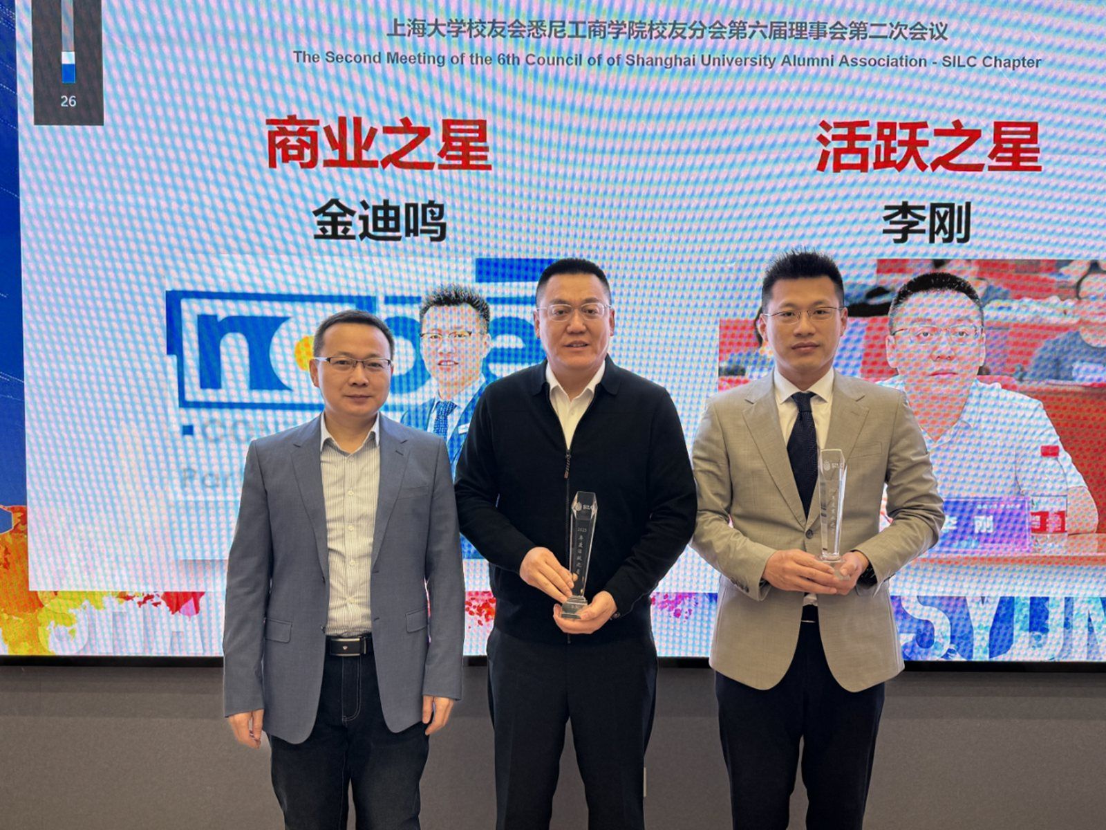 会议调整了悉尼工商学院校友分会第六届理事名单。随后举行了2025年度“校友之星”代表颁奖仪式。卞亦文为获奖代表——商业之星获得者金迪鸣校友、活跃之星获得者李刚校友颁发荣誉奖杯,表彰他们为学院与校友群体作出的积极贡献,也激励更多校友以榜样为力量,在各自领域发光发热,反哺母校与社会。