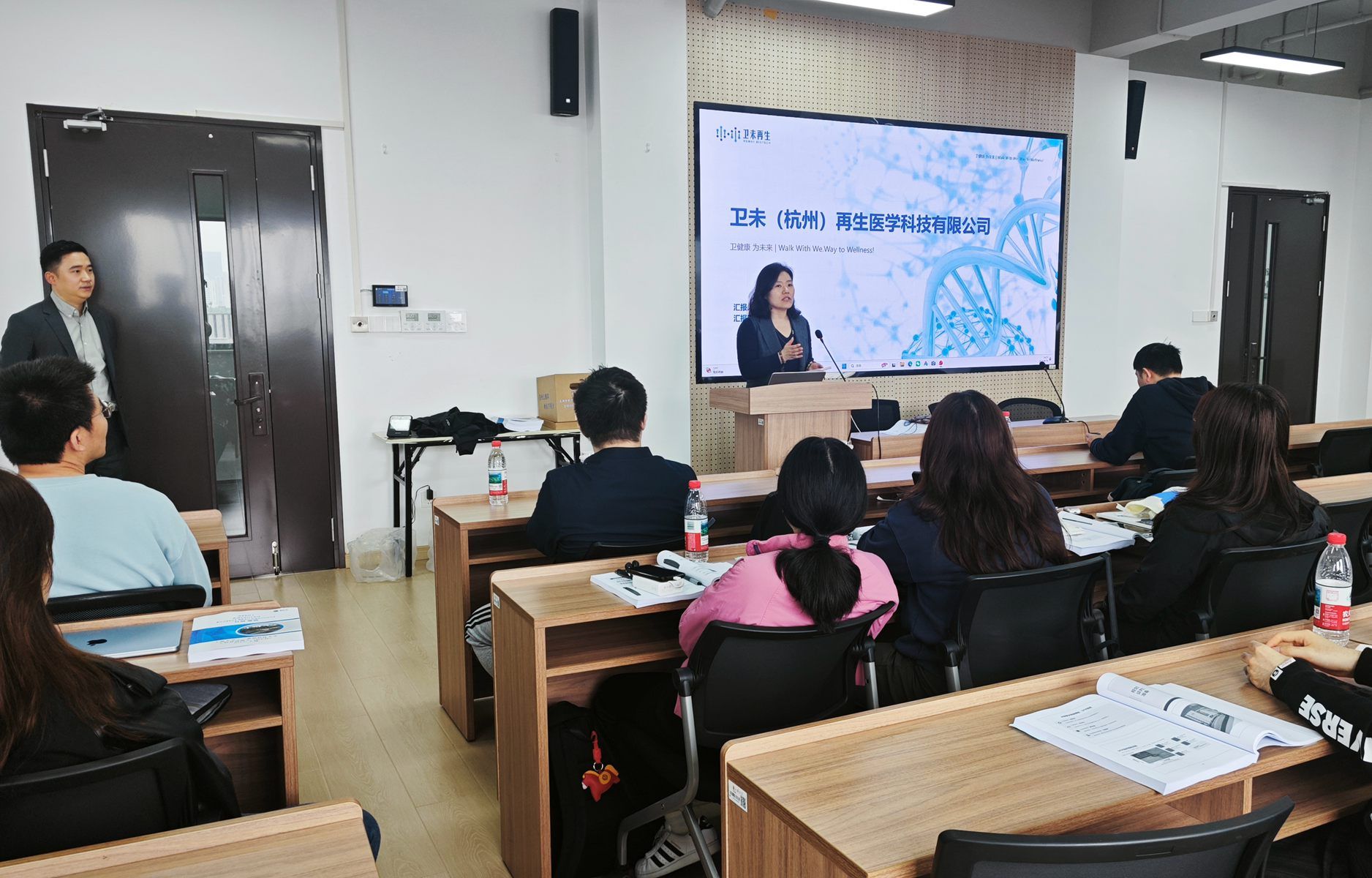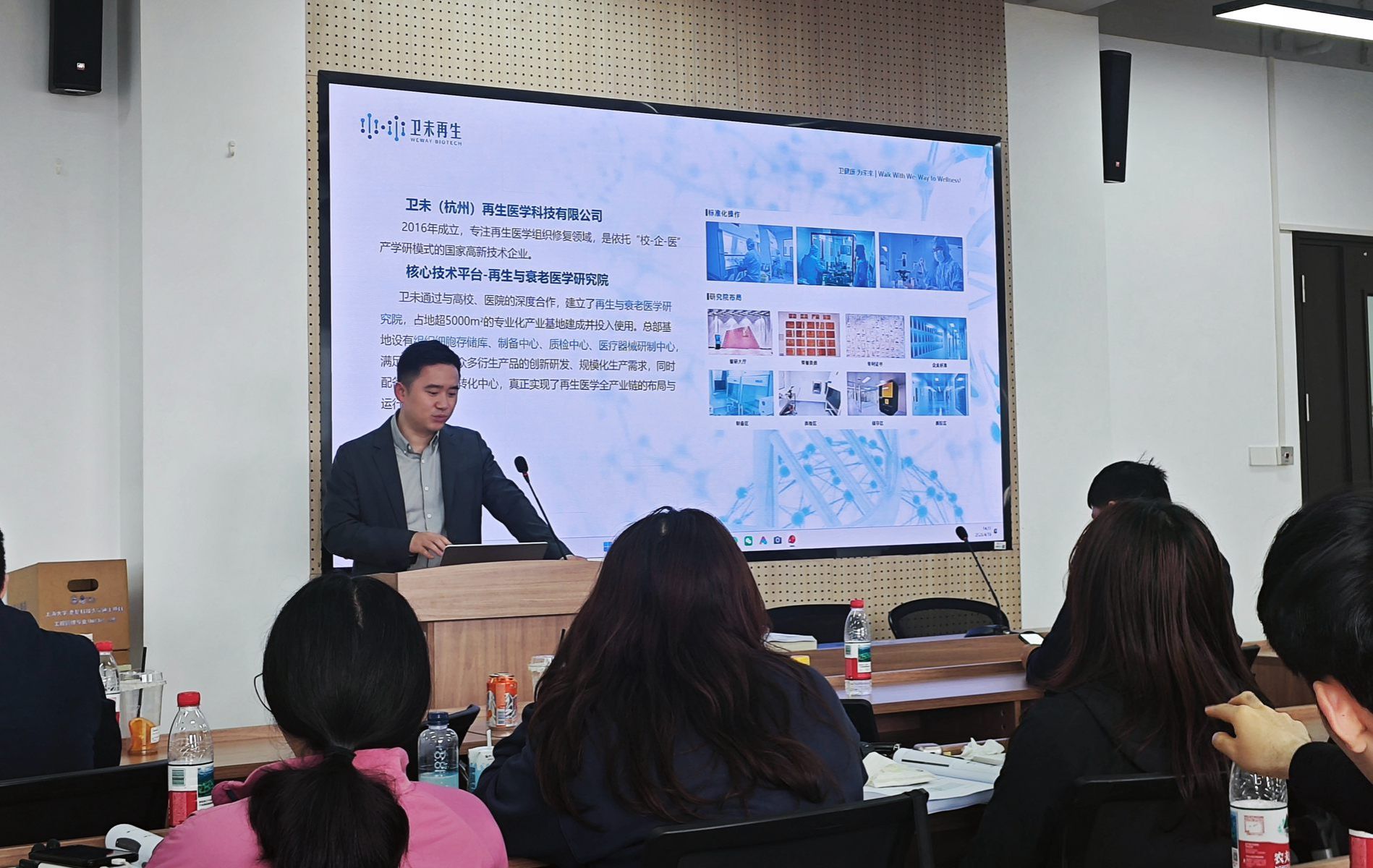 4月19日的路演则聚焦生物医药前沿领域。本场路演企业为卫未(杭州)再生医学科技有限公司,UTS硕士2023届校友杜琳琳为该公司创始人、董事兼财务负责人。路演当天,该公司创业合伙人、营销总监周滢博士担任主讲,为在场师生全面展示了企业在再生医学领域的创新布局与核心科技。
