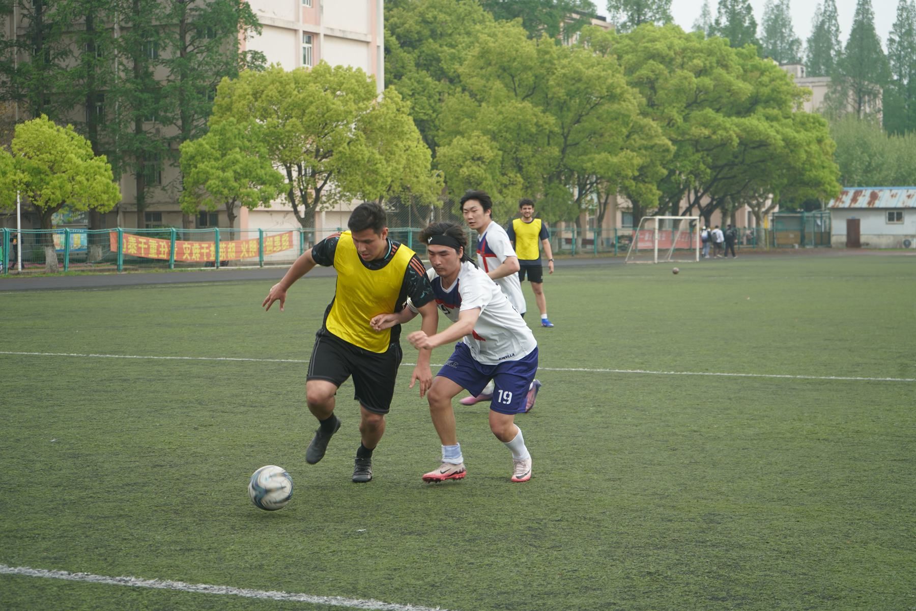 下午14:00,本届足球友谊赛正式拉开战幕。比赛进程紧张而友好,前三节双方攻防有序、互有攻守。第三节,来华留学生队凭借连续角球机会把握战机破门得分,以1:0取得领先。中国学生队奋力反扑、积极追分,但未能改写比分。终场哨响,来华留学生队捧起冠军奖杯,本届赛事圆满收官。 The match officially kicked off at 14:00. The game was intense yet friendly, with both sides displaying organized offense and defense in the first three periods. In the third quarter, the international student team seized the opportunity from consecutive corner kicks and scored to take a 1‑0 lead. The Chinese student team fought back hard in search of an equalizer but was unable to change the score. When the final whistle blew, the international student team lifted the championship trophy, bringing a successful close to the event.