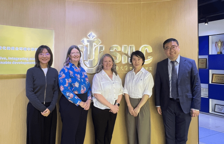 4 月 24 日,澳大利亚悉尼科技大学(UTS)工程与信息技术学院教学副院长Karen Whelan、商学院代理教学副院长Katie Schlenker、国际部海外拓展代理经理Chloe Wei一行到访我院。学院院长卞亦文、副院长方慧、霍伟伟、蔡震尧,海外留学生教育中心主任侯克强、国际部主任顾浩东、副主任孟瑞琼等出席会议。
